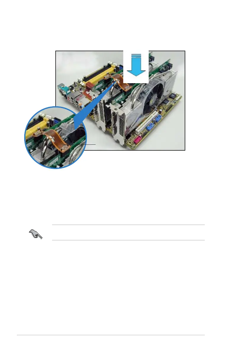 5. Align and insert the SLI connector to the goldngers on each graphics card.