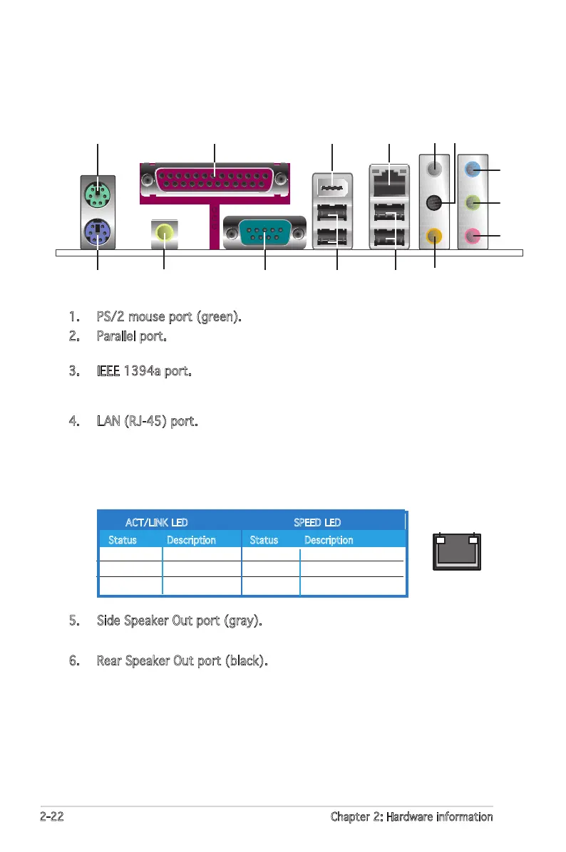 1. PS/2 mouse port (green). This port is for a PS/2 mouse.