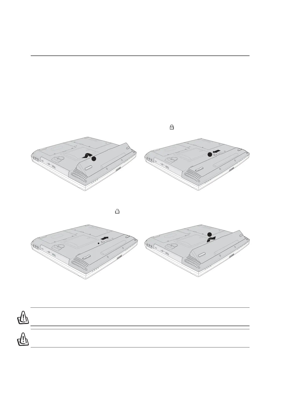 WARNING! Never attempt to remove the battery pack while the Notebook PC is turned