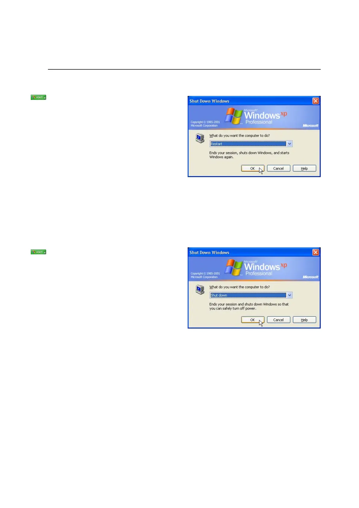 Click the Start button and select Shut Down | and