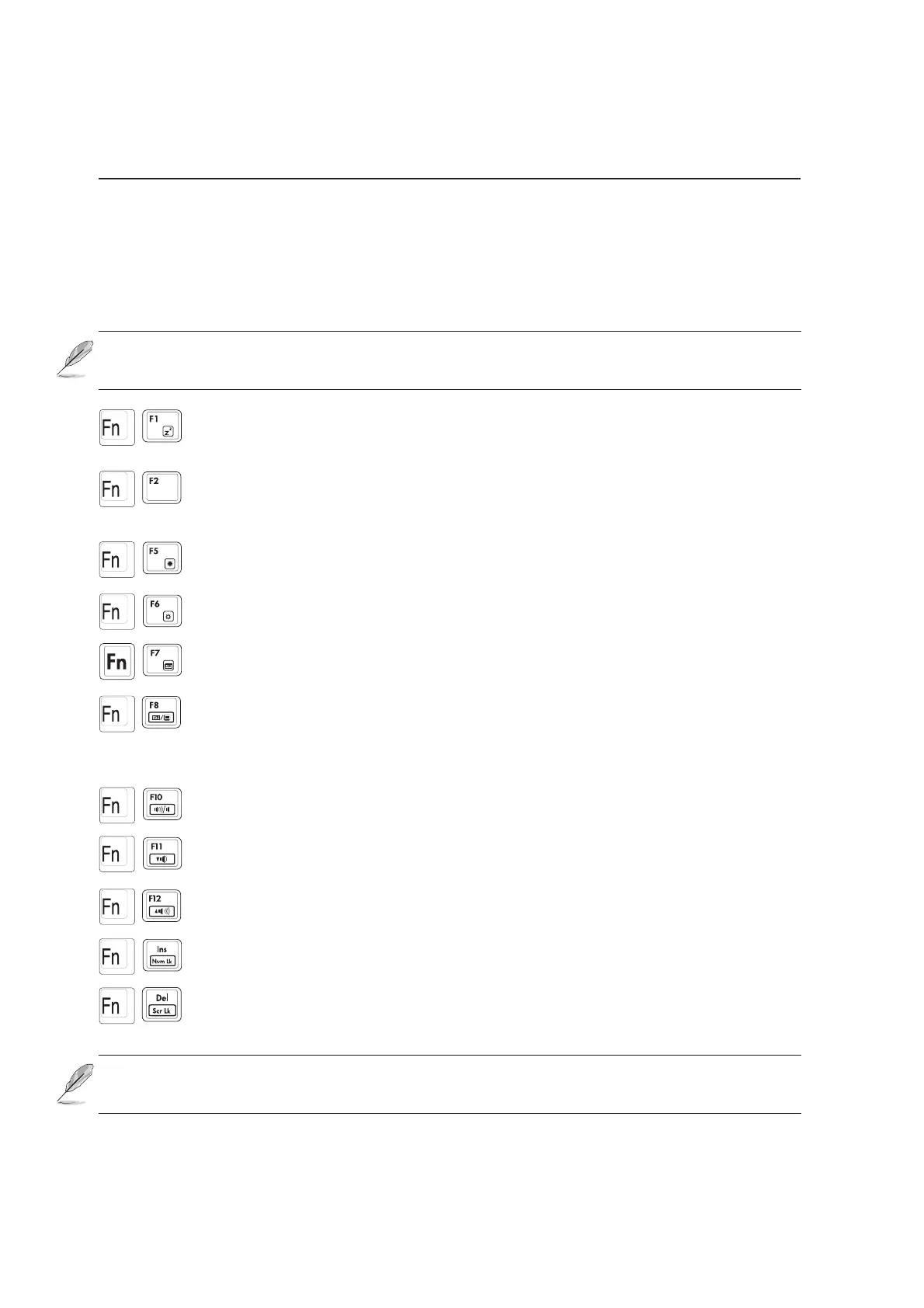 NOTE: Hot Keys work only on the Notebook PC’s own keyboard and not on any exter-