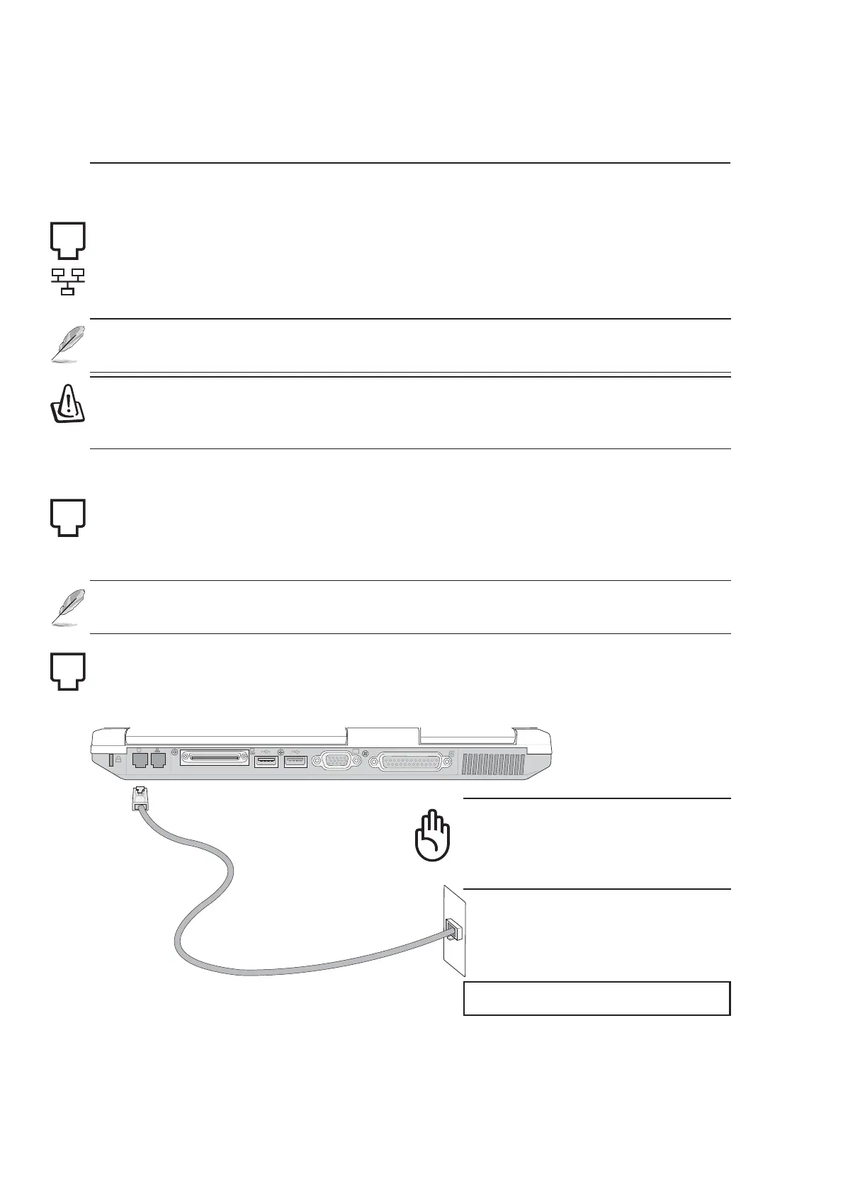 WARNING! Only use analog telephone outlets. The built-in modem does not support