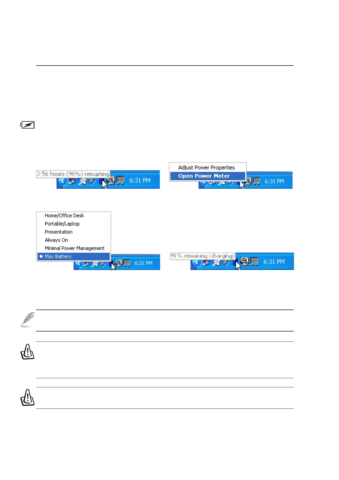 “battery” when not using AC power and a “plug” when using AC power. Double click on the icon for