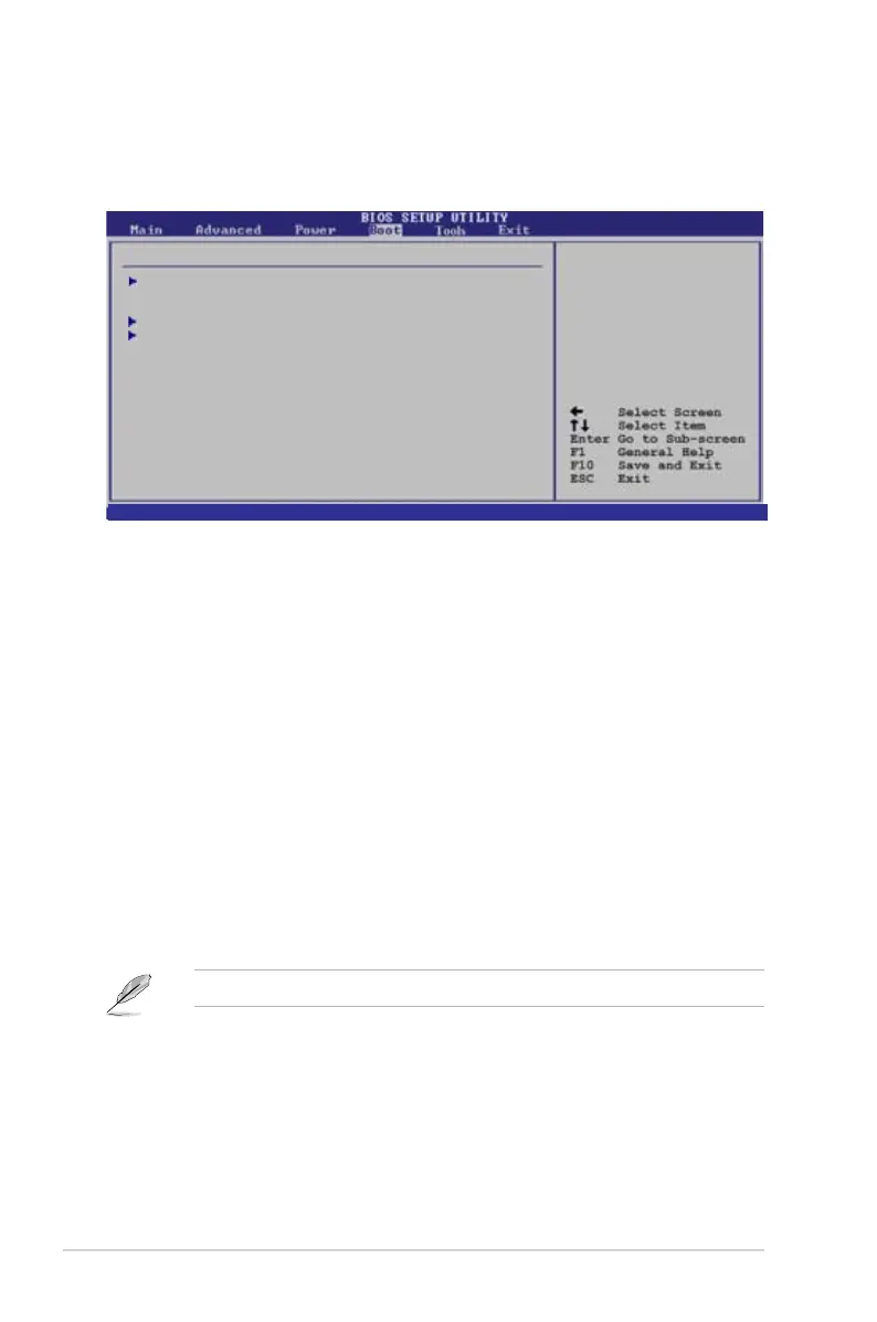 The Boot menu items allow you to change the system boot options. Select an item then press