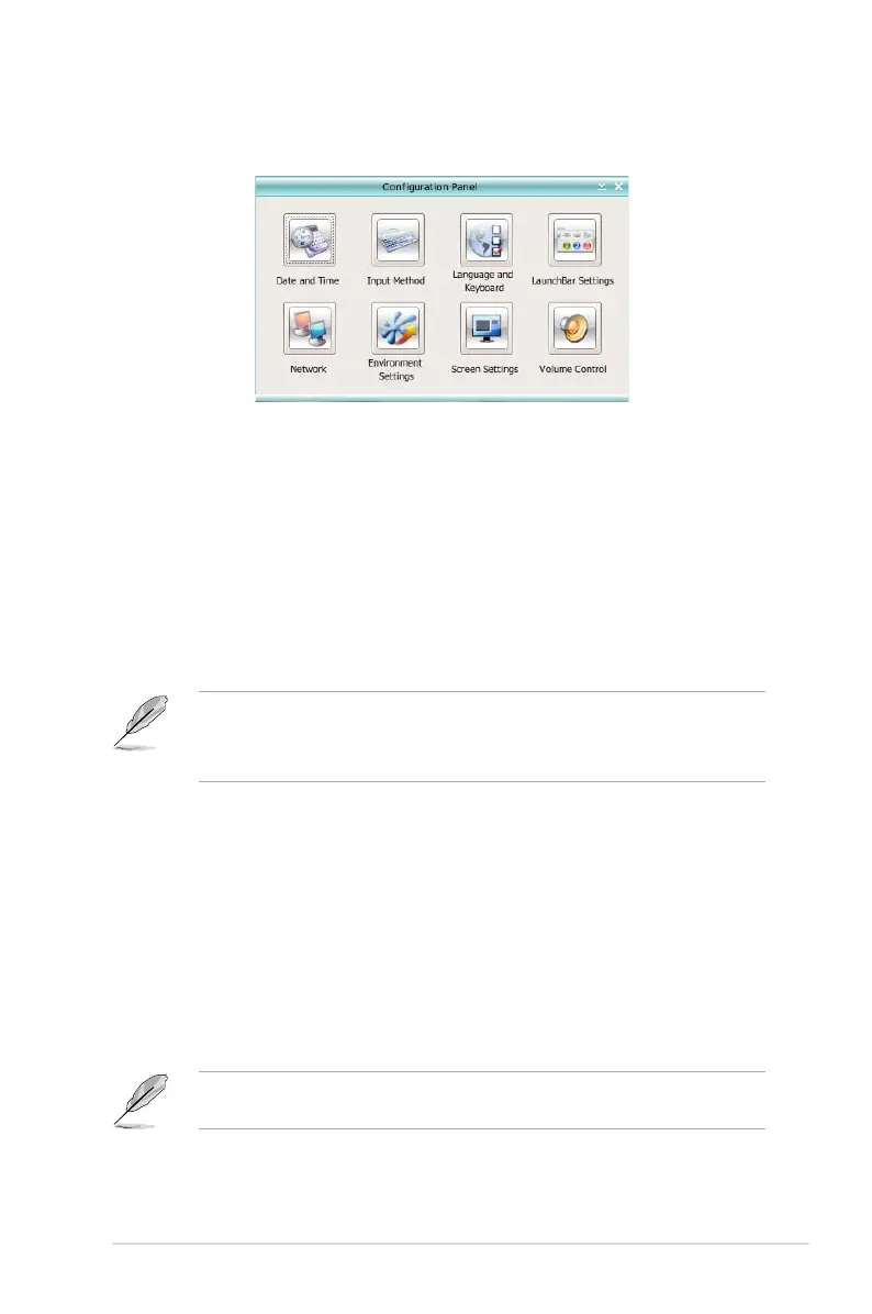 Click on an icon to open a particular conguration tool. The following tools are