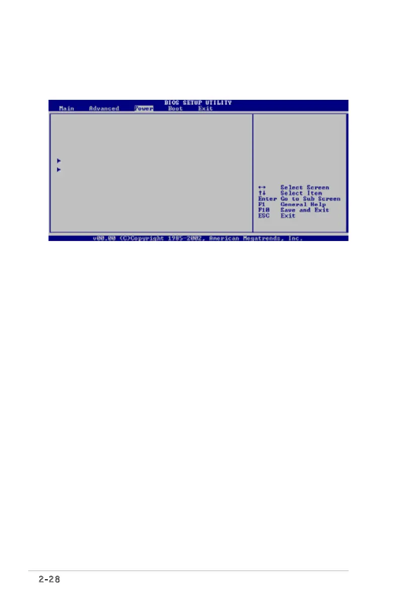 电源管理菜单可以让您更改电源设置。选择其中一项,然后按下 <Enter> 来进行设