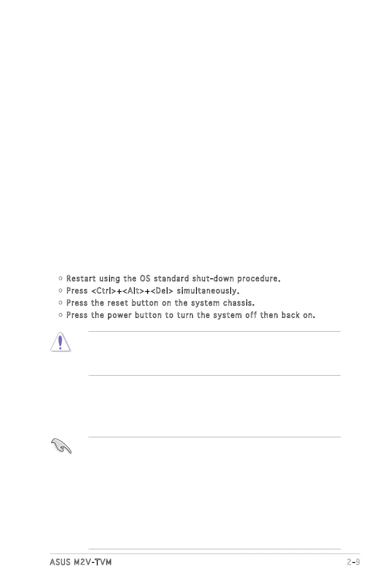 Using the power button, reset button, or the <Ctrl>+<Alt>+<Del> keys