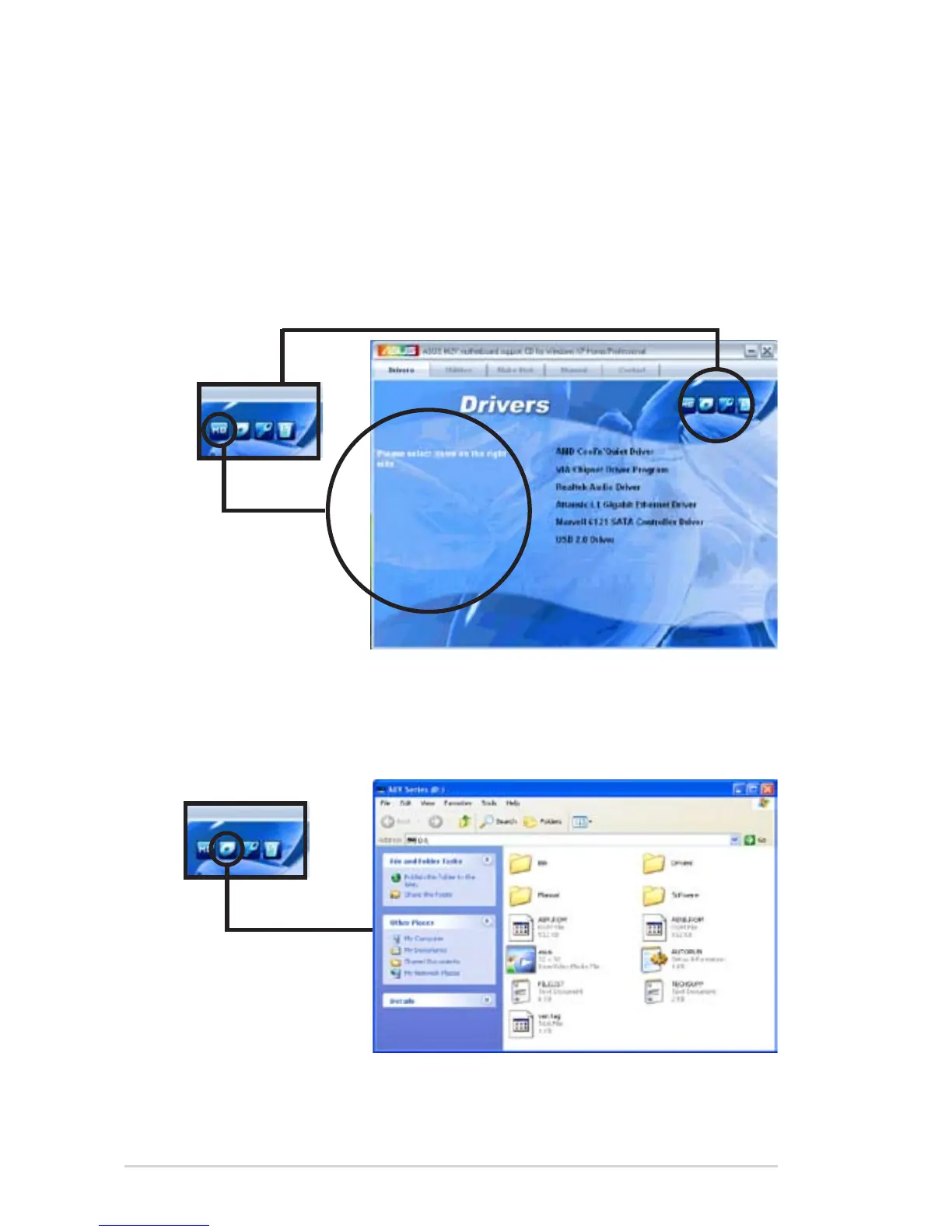 on the motherboard and the contents of the support CD. Click an icon to