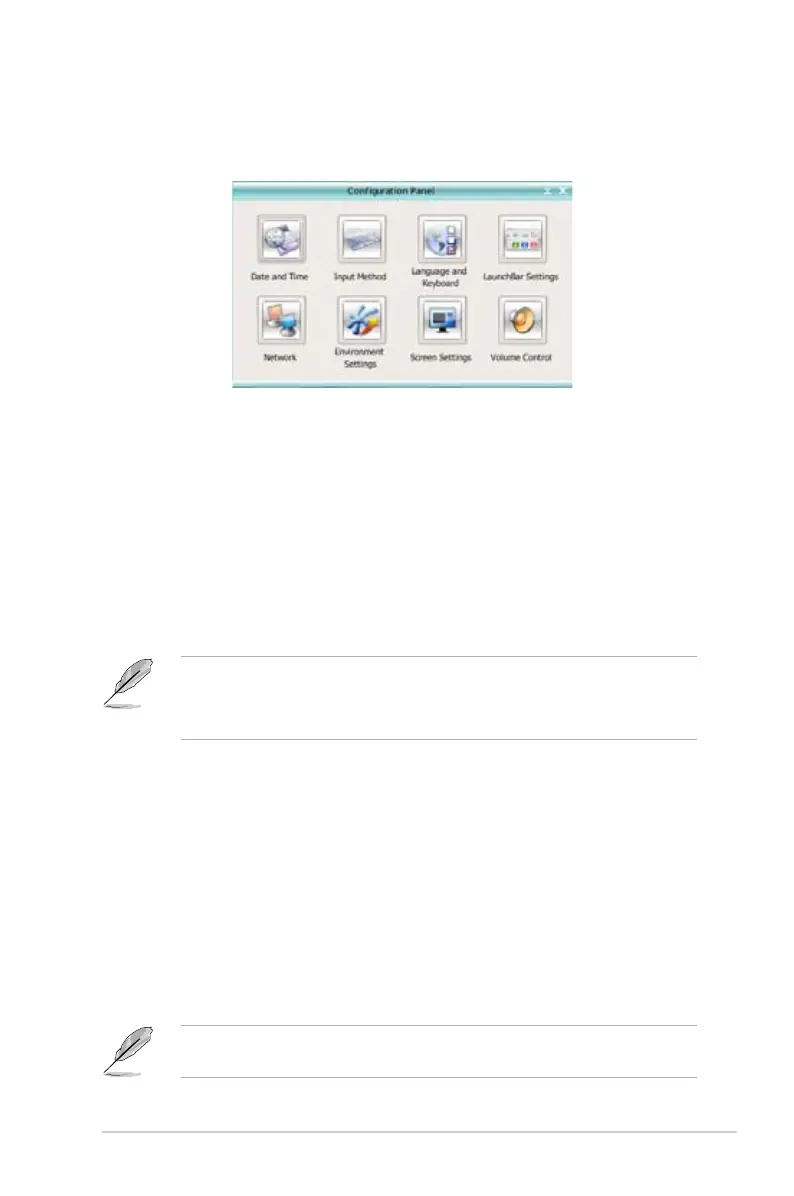 Click on an icon to open a particular conguration tool. The following tools are