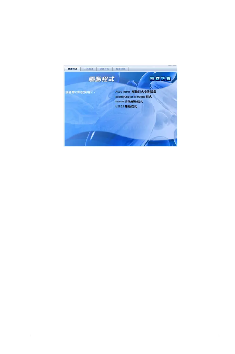 在驅動程式選單中會顯示所有適用於本主機板的硬體裝置的驅動程式。系