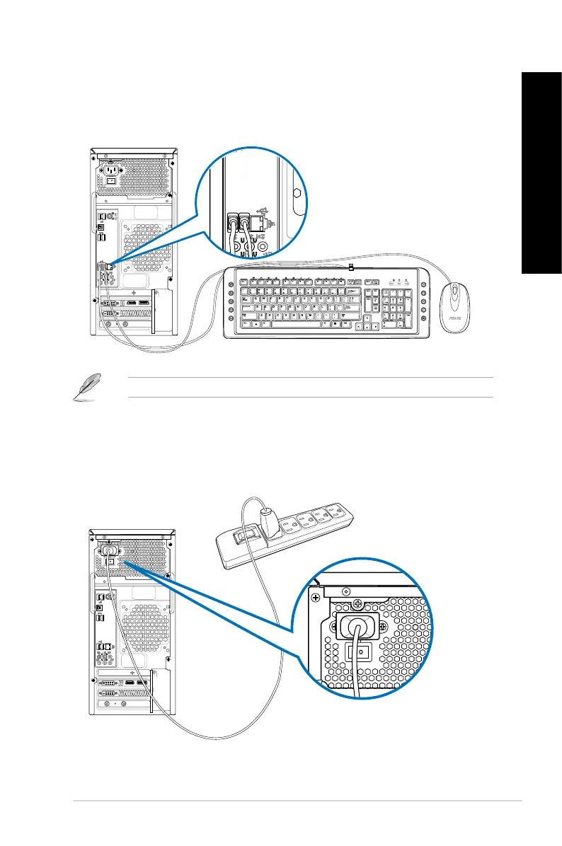 Connect your USB keyboard and USB mouse to the USB 2.0 ports.