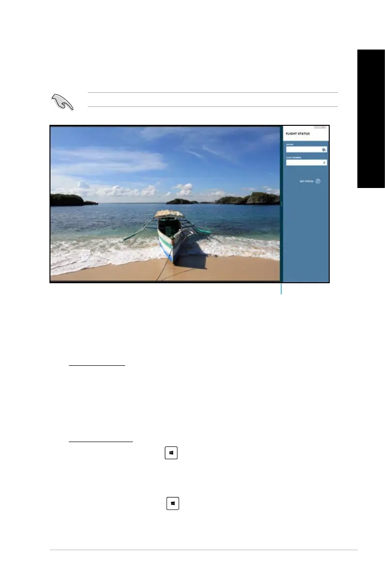 • Launch an app then press + < . > to activate the Snap bar. The rst app would