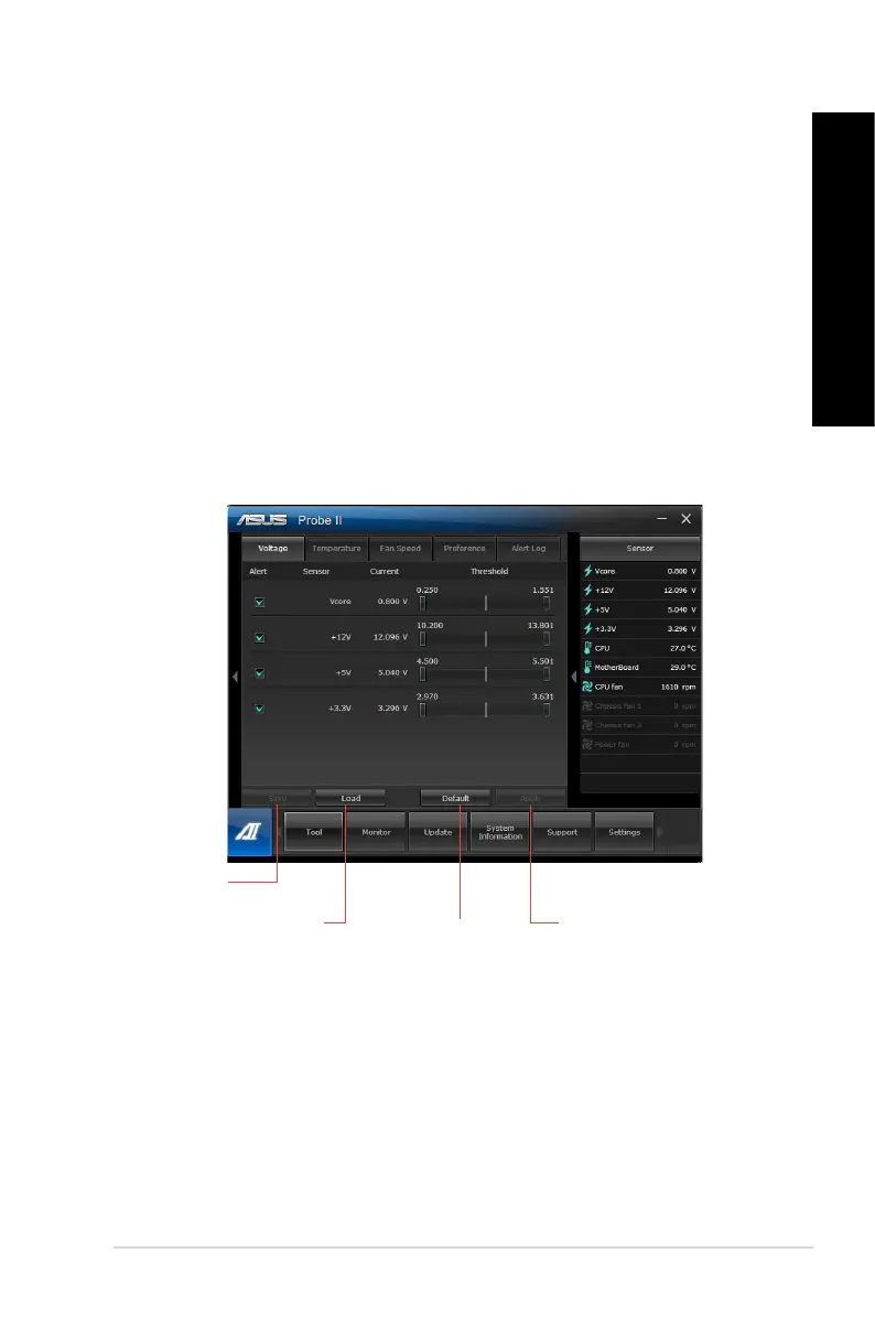 Voltage/Temperature/Fan Speed tabs to activate the sensors or to adjust the
