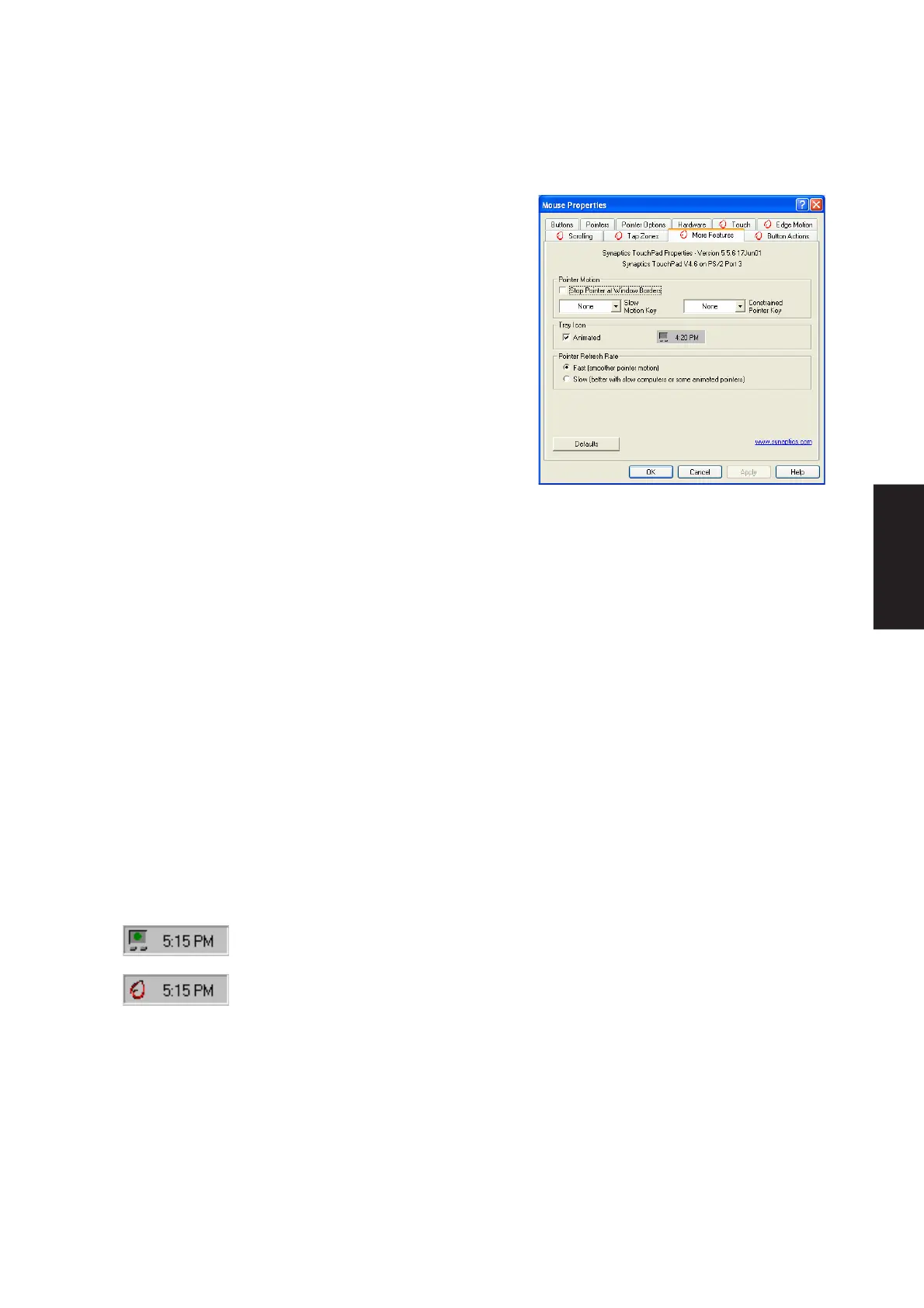The Synaptics TouchPad tray icon appears in the Windows Taskbar near the clock. You can