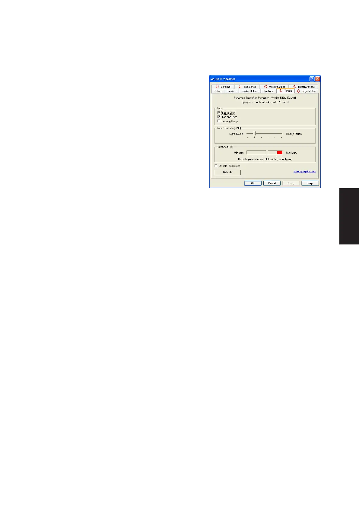 The Palm Check slider controls the TouchPad’s detection of accidental and unwanted pointing movement.