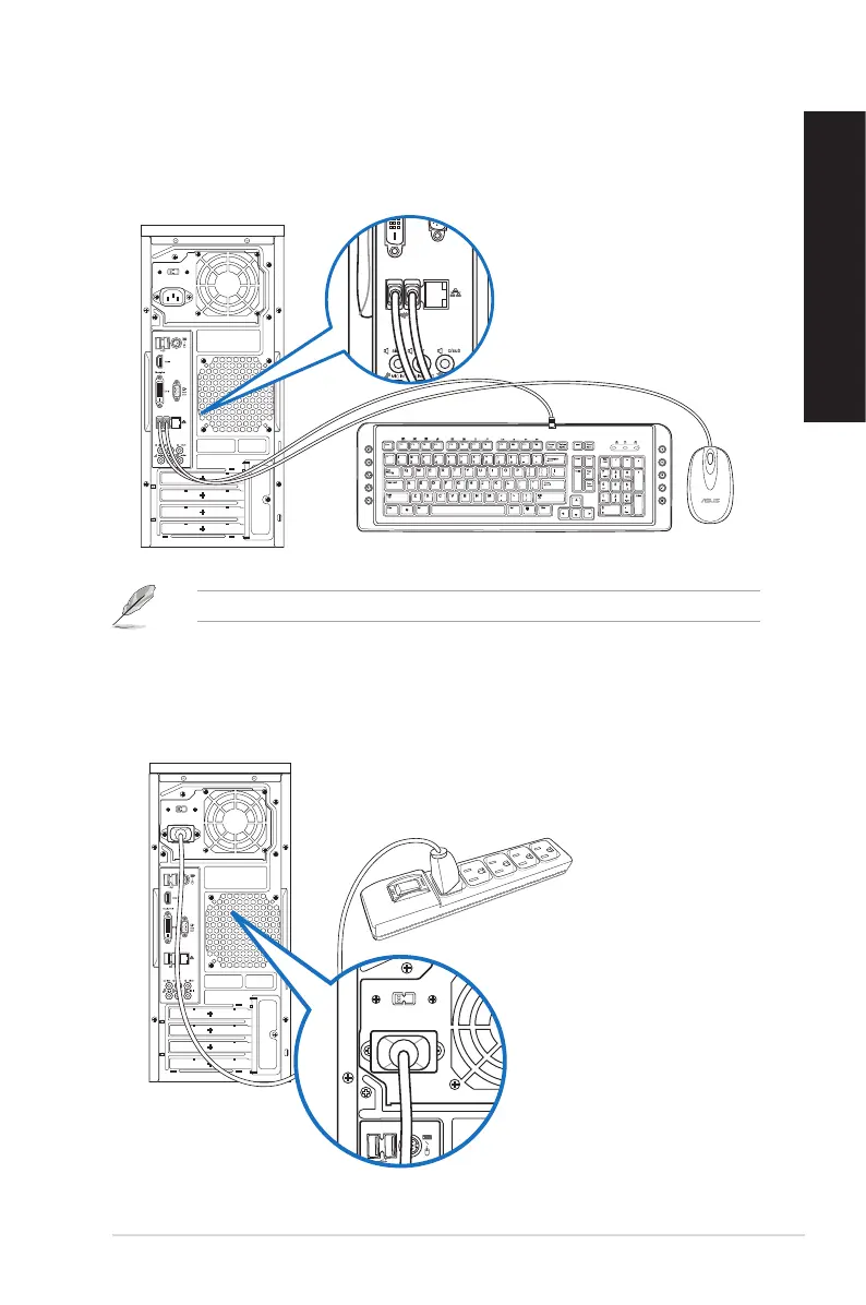 Connect your USB keyboard and USB mouse to the USB 2.0 ports.