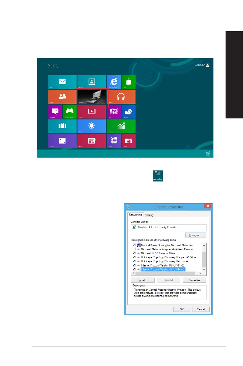 1. From the Start screen, click Desktop to launch the Desktop mode.