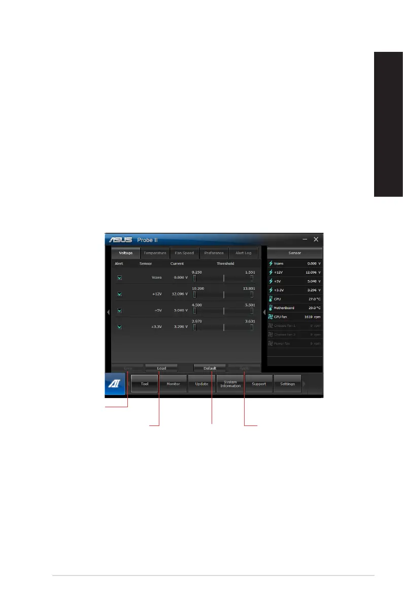 • Click the Voltage/Temperature/Fan Speed tabs to activate the sensors or to adjust the
