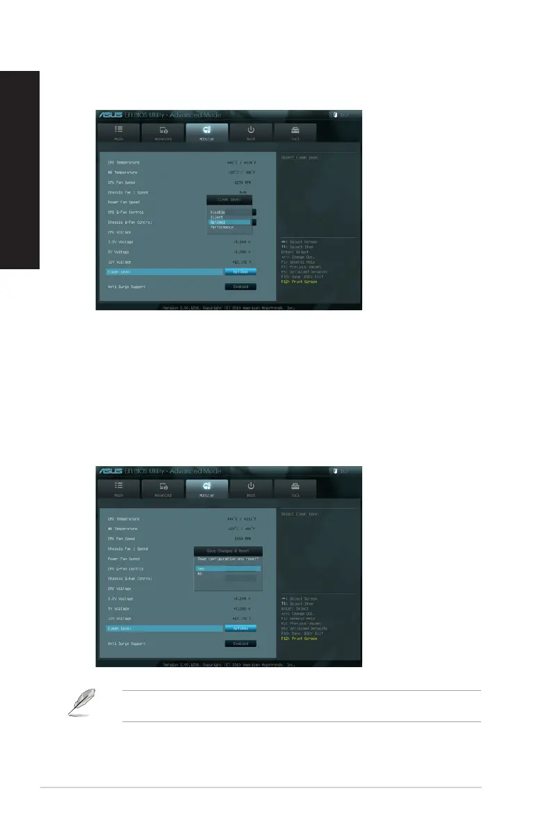 • Silent: 40% of the fan’s performance (poor performance but low noise)