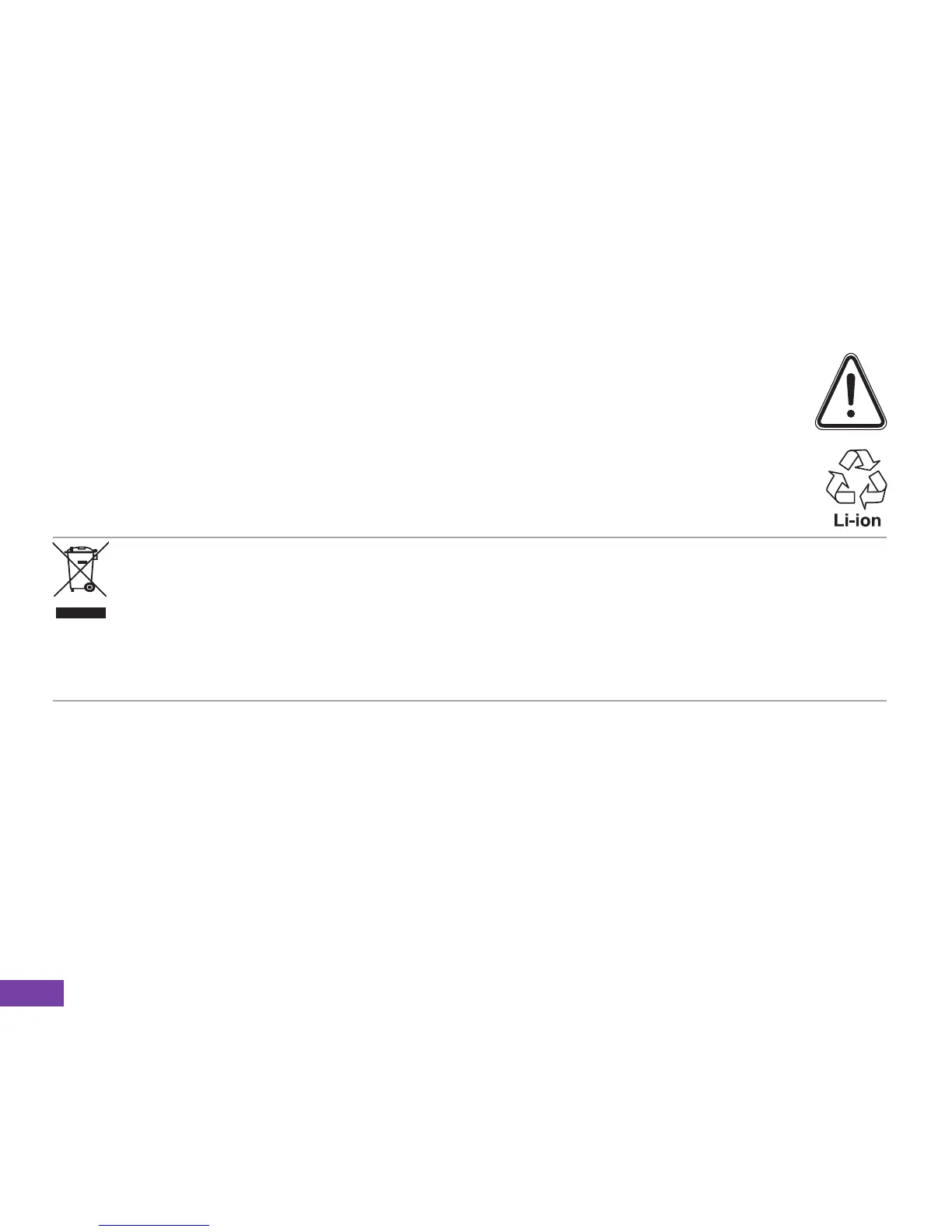 Battery pack care. This product contains a Li-Ion Polymer battery. There is a risk of fire