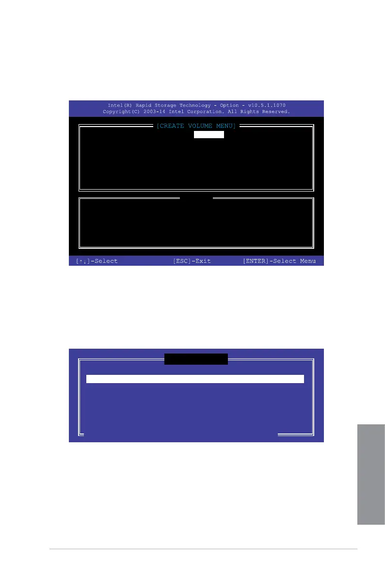 1. From the utility main menu, select 1. Create RAID Volume and press <Enter>. The