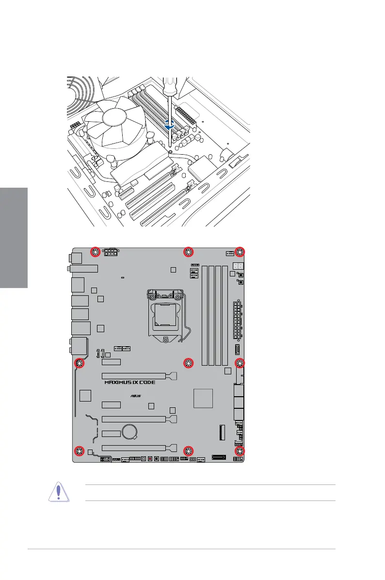 DO NOT over tighten the screws! Doing so can damage the motherboard.