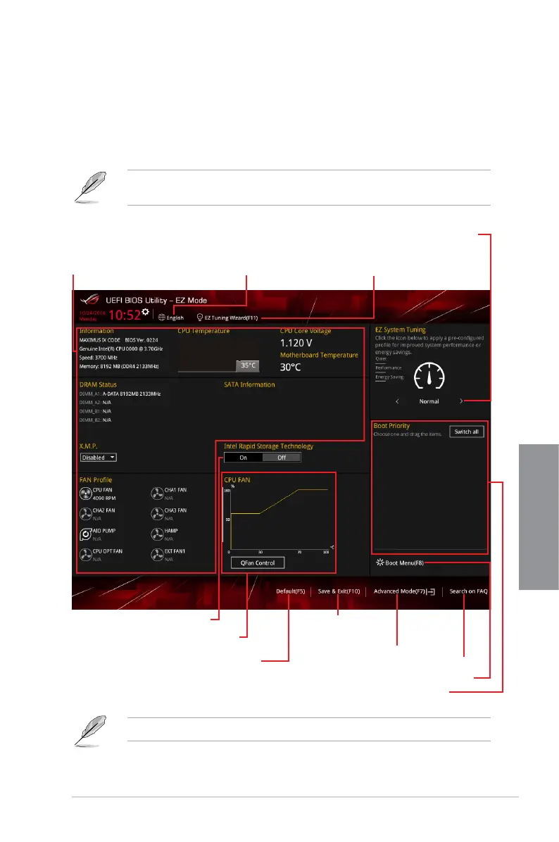 By default, the EZ Mode screen appears when you enter the BIOS setup program. The EZ