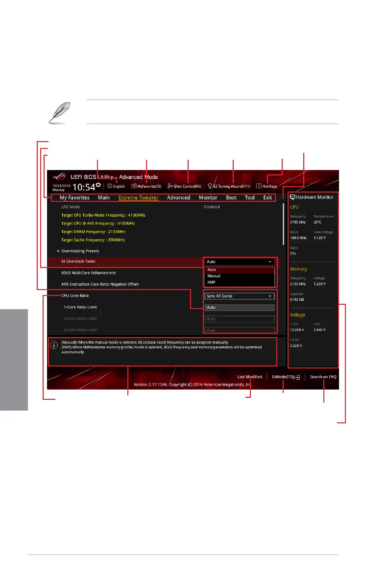 the BIOS settings. The gure below shows an example of the Advanced Mode. Refer to the