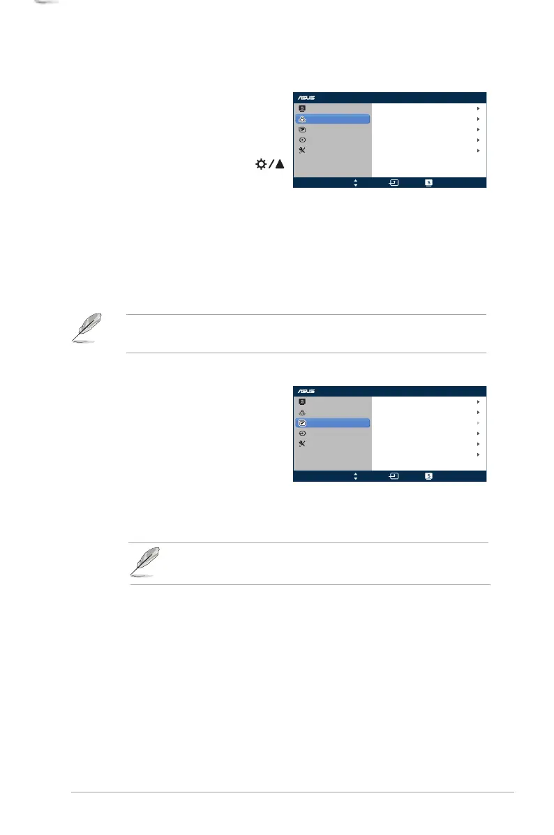 • ASCR: turns on/off the ASCR (ASUS Smart Contrast Ratio)