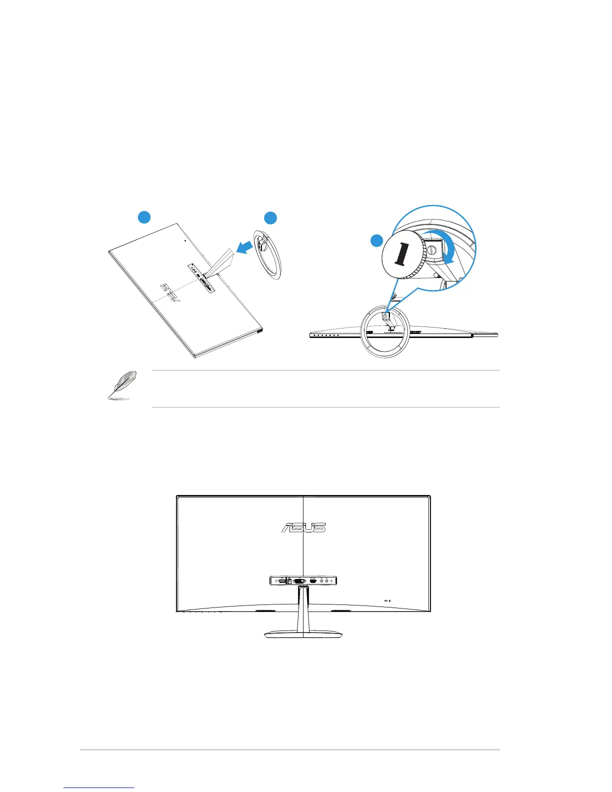 3. Use a coin to lock the base to the stand tightly. The monitor is now