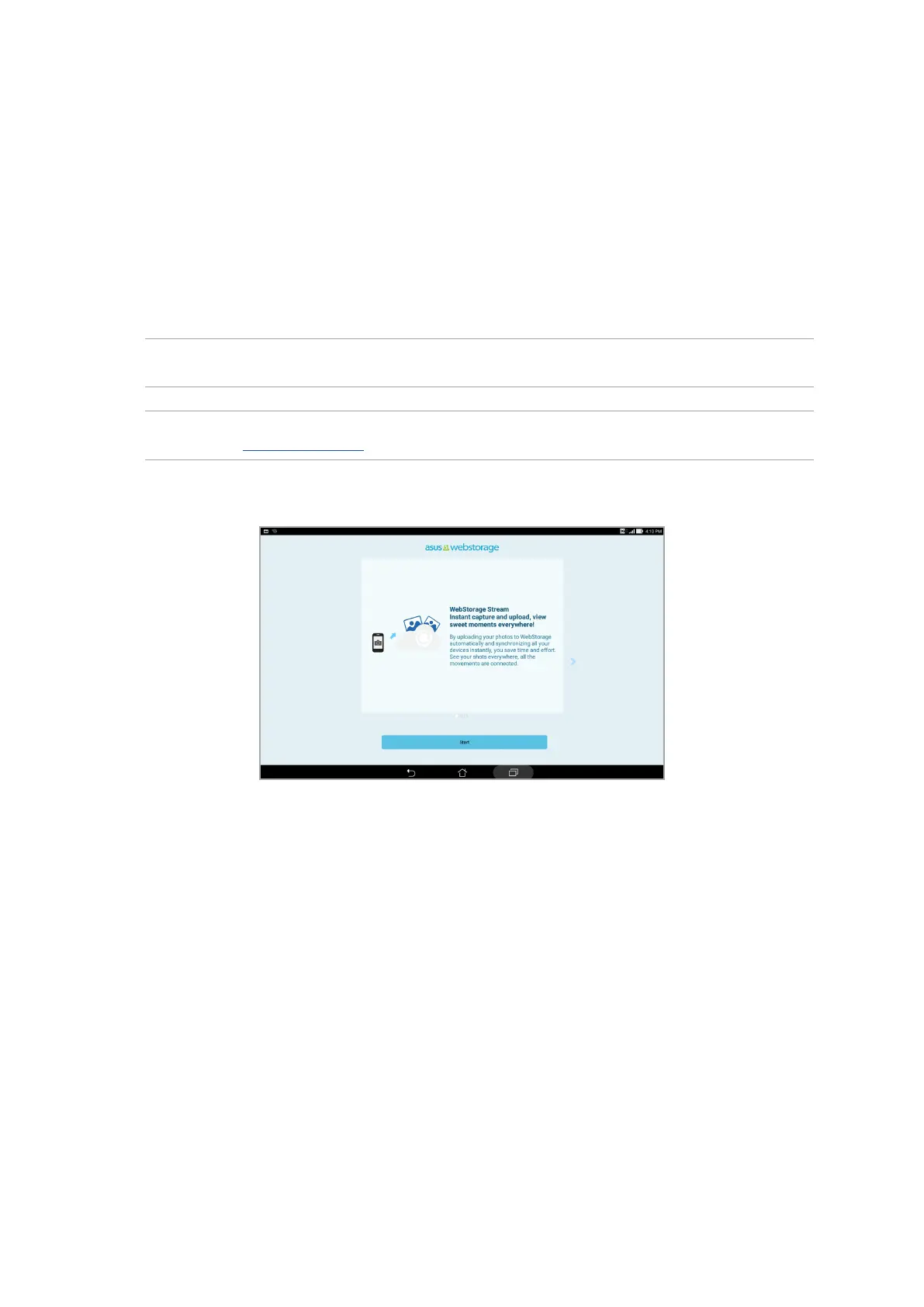 captured photos for instant sharing, sync les among dierent devices, or share les via your ASUS