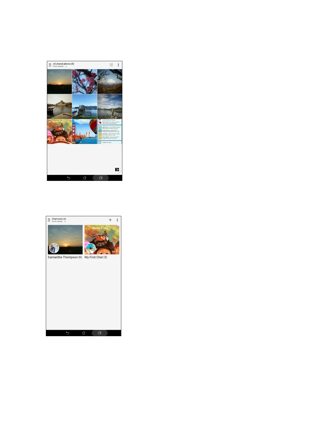 Tap Chat room to view photos shared by chat room or social hotspot.