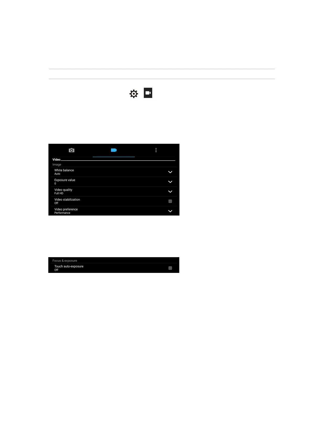 Adjust the appearance of your recorded videos by conguring your camera’s settings using the
