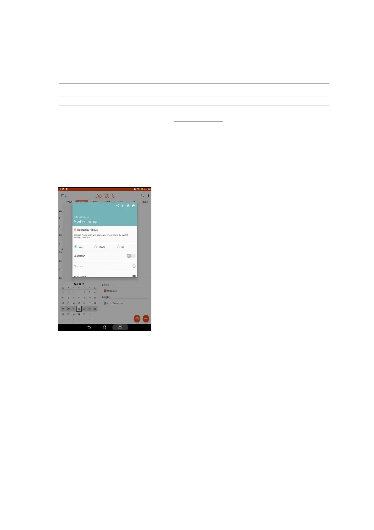 IMPORTANT! Your ASUS Tablet must be connected to a Wi-Fi or mobile network to get emailed invites