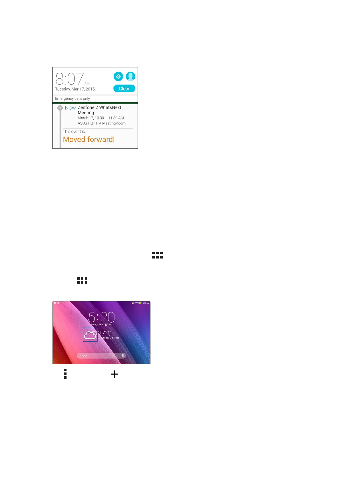 • From your ASUS Tablet’s home screen, tap the weather icon.