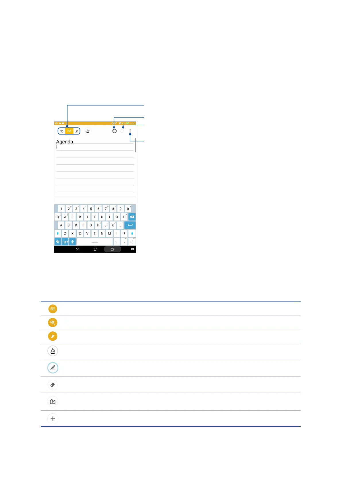 Depending on your selected input mode, these icons appear as you take down your notes on
