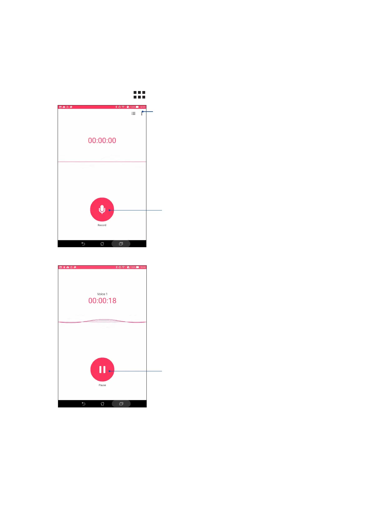 Record audio les using your ASUS Tablet by enabling the Sound Recorder app.