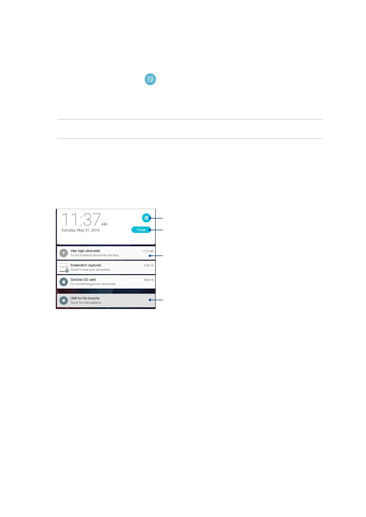 To launch the System notications panel, swipe down from the top of your ASUS Tablet.