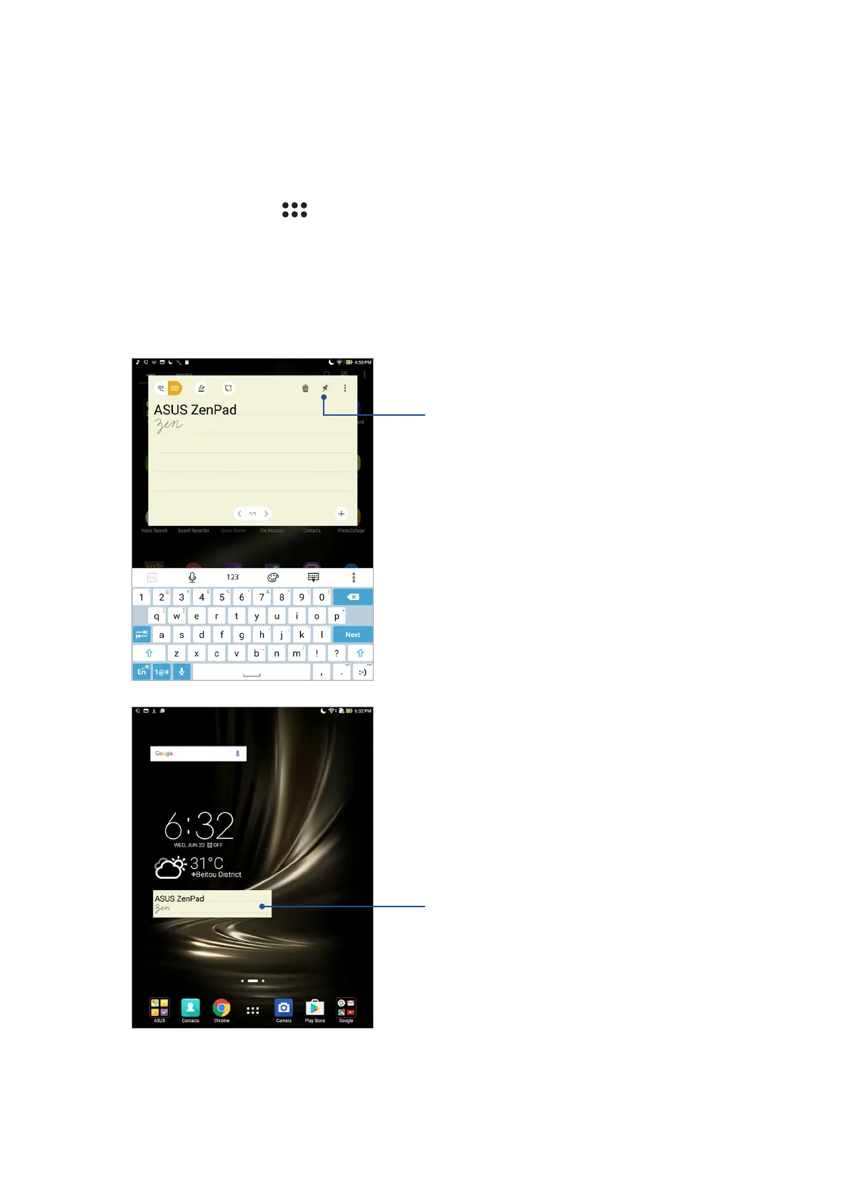 You can turn Quick Memo notes into a sticky note so you can view them anywhere on your ASUS