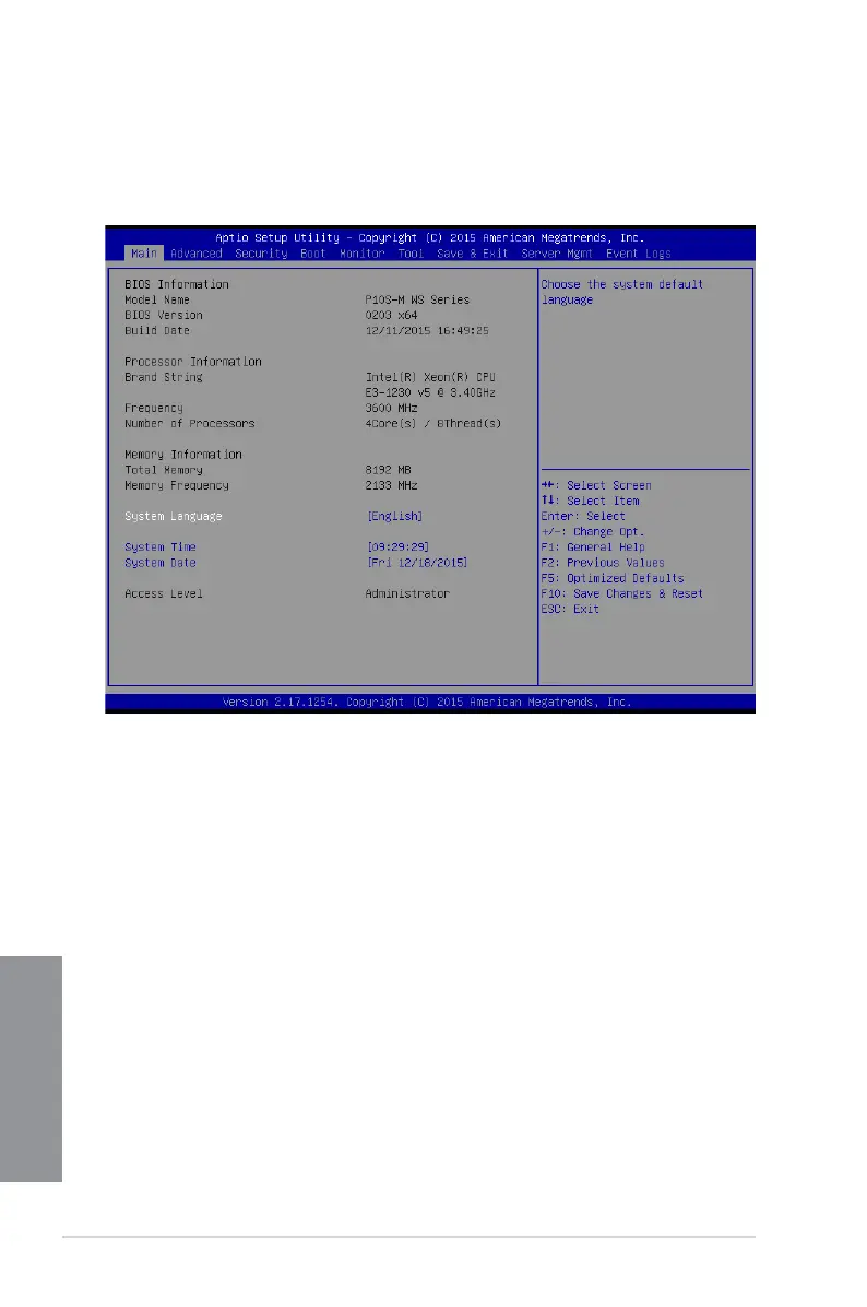 WhenyouentertheBIOSSetupprogram,theMainmenuscreenappears.TheMainmenu