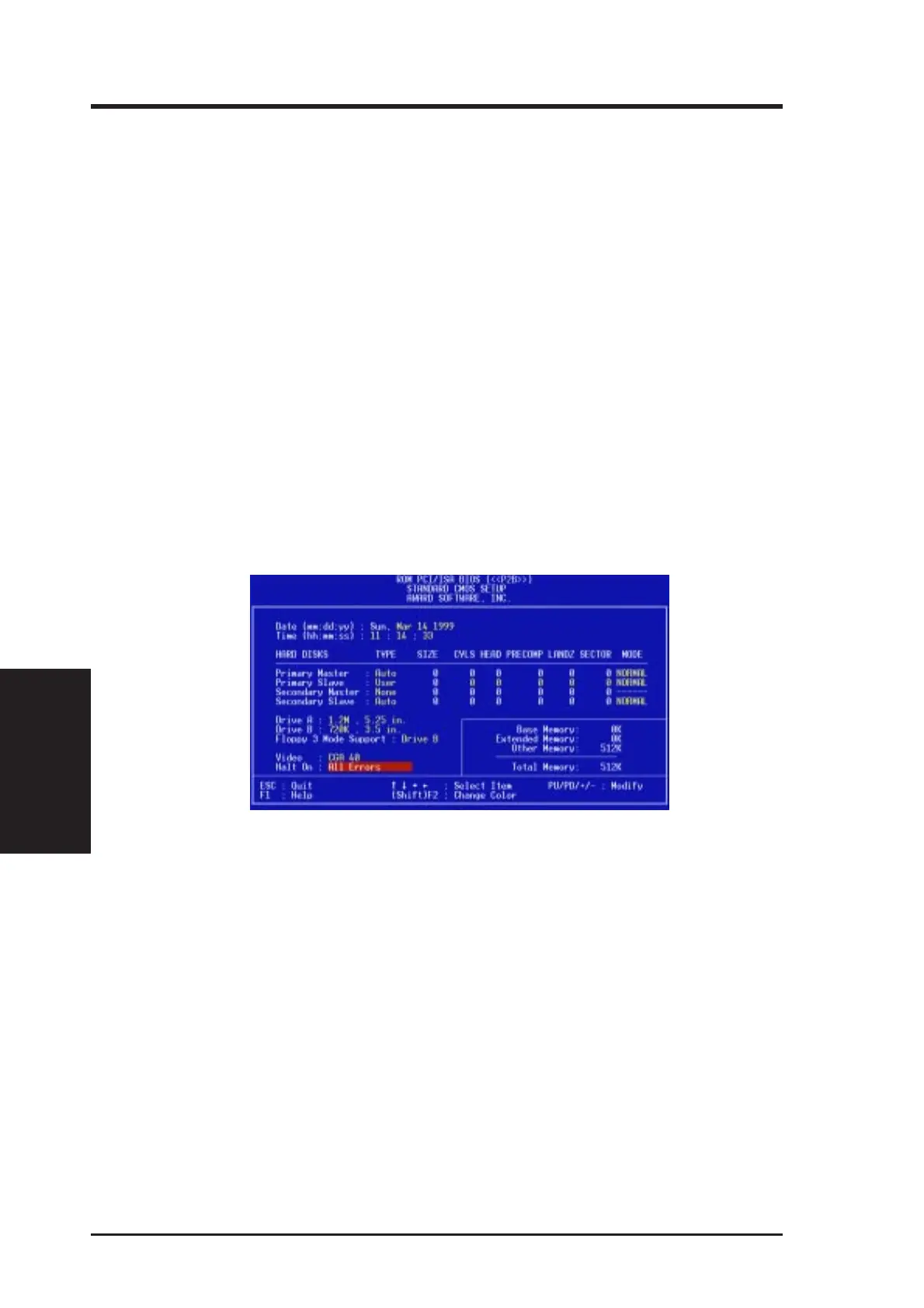 The “Standard CMOS Setup” option allows you to record some basic system hard-