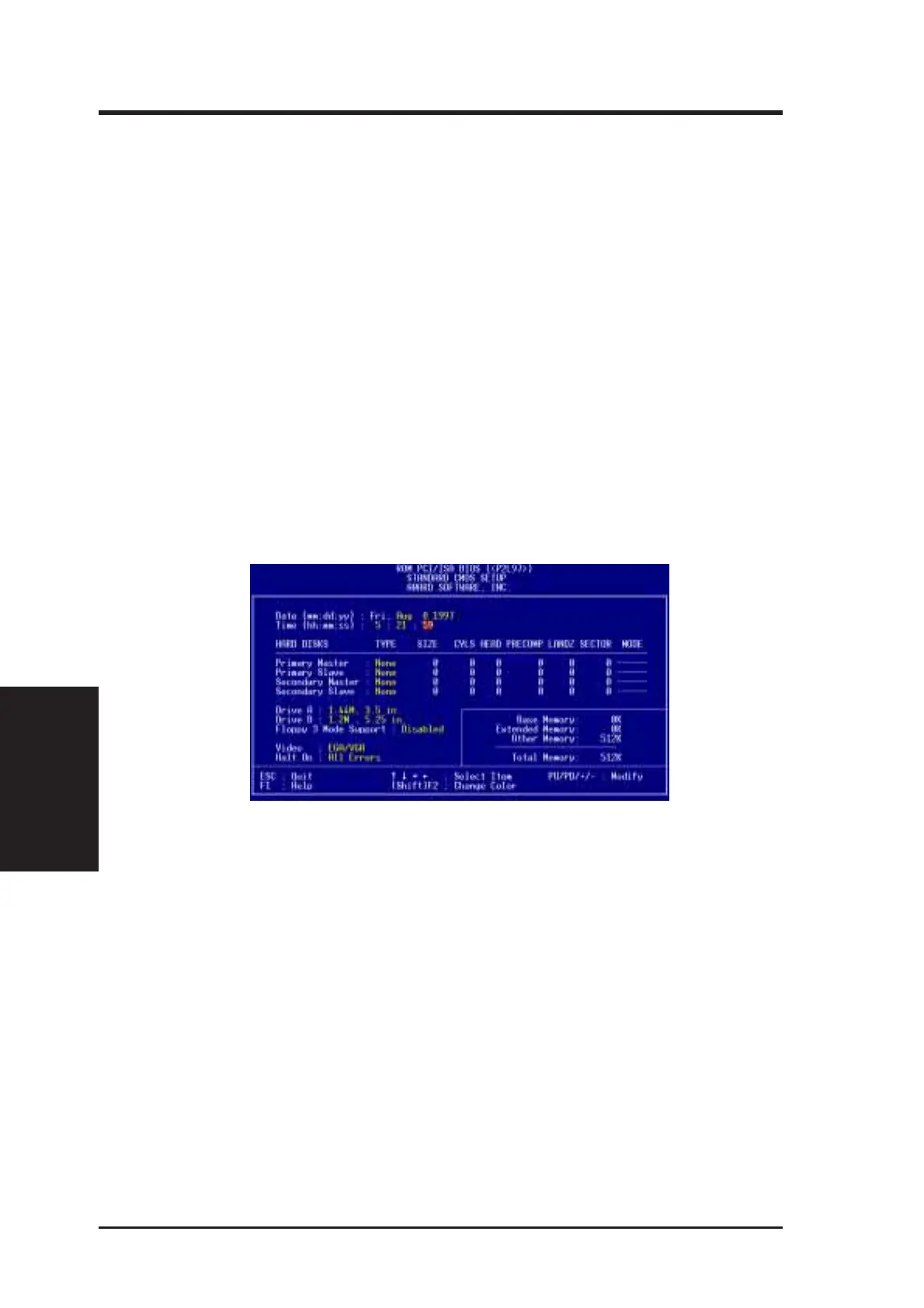 This “Standard CMOS Setup” option allows you to record some basic system hard-