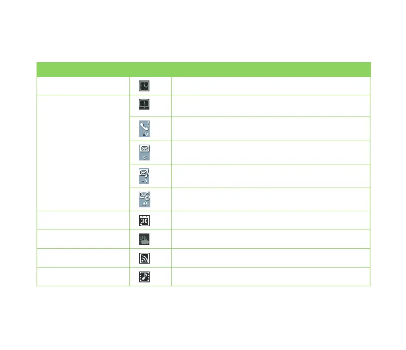 Alert icon Alerts you on your missed calls, and new SMS/MMS/e-