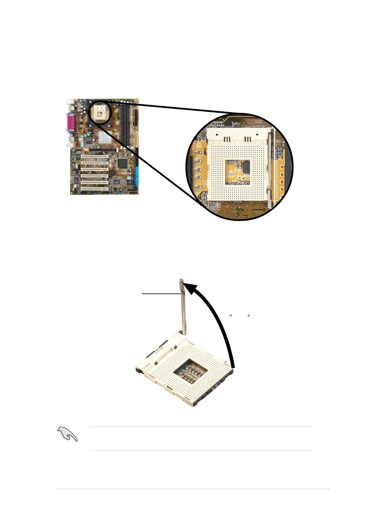 Make sure that the socket lever is lifted up to 90°-100° angle,