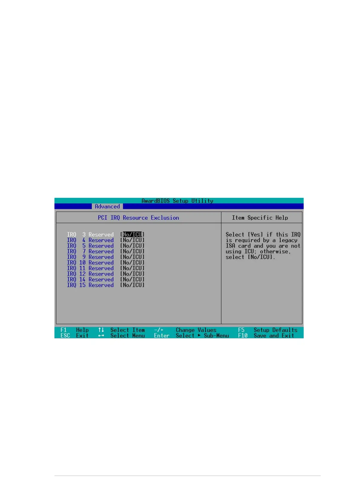 IRQ field to [Yes] if you install a legacy ISA card that requires a unique IRQ