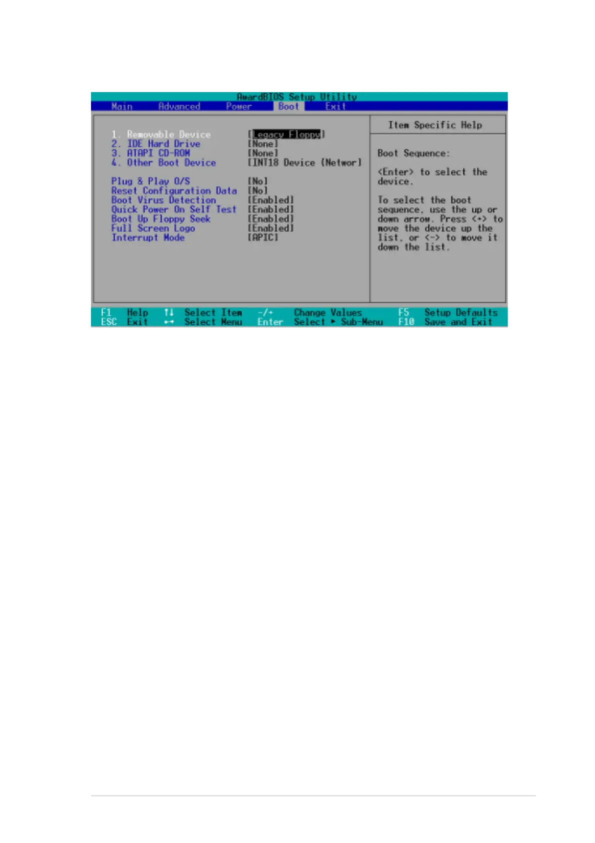 Other Boot Device Select [INT18 Device (Network)]