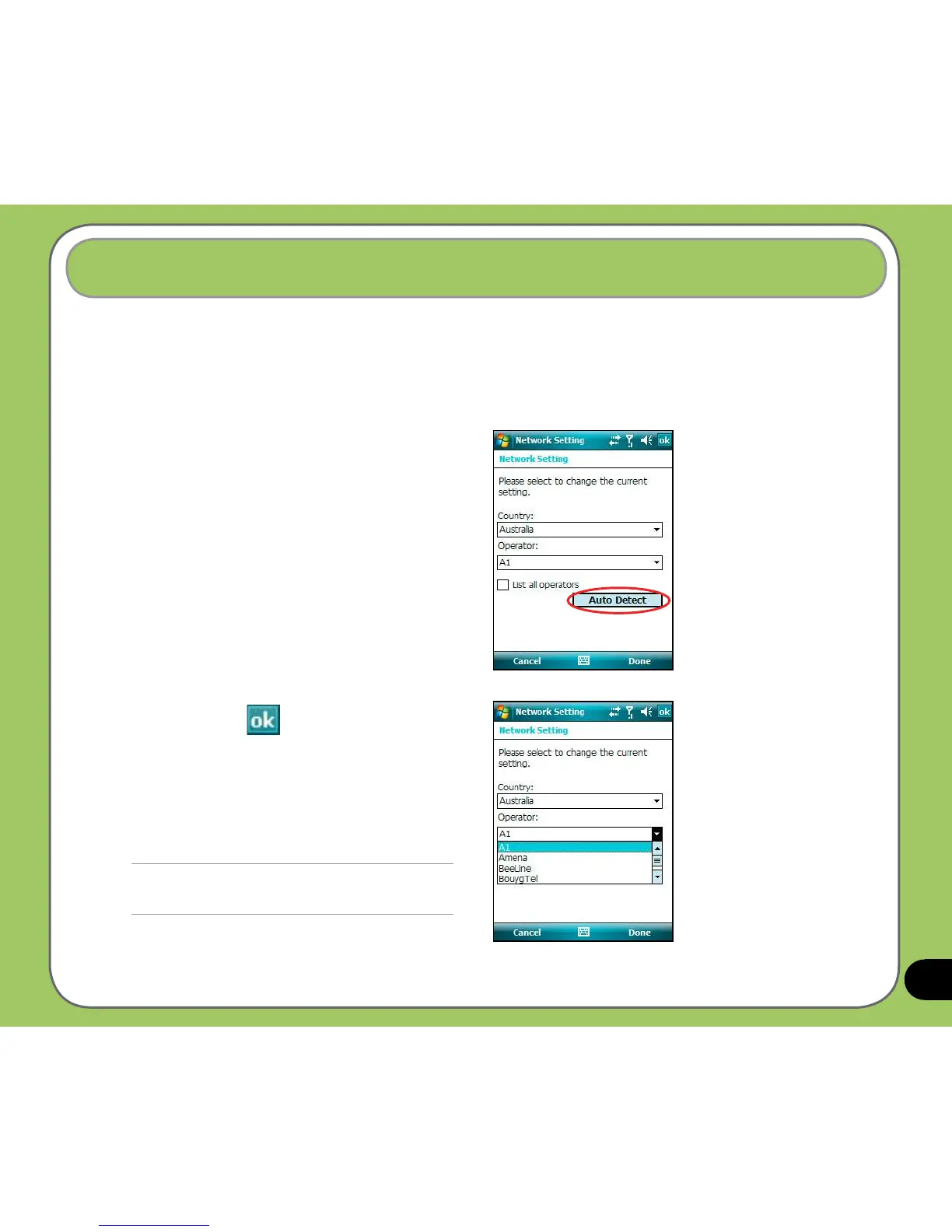 This function helps you to congure network settings automatically according to your SIM