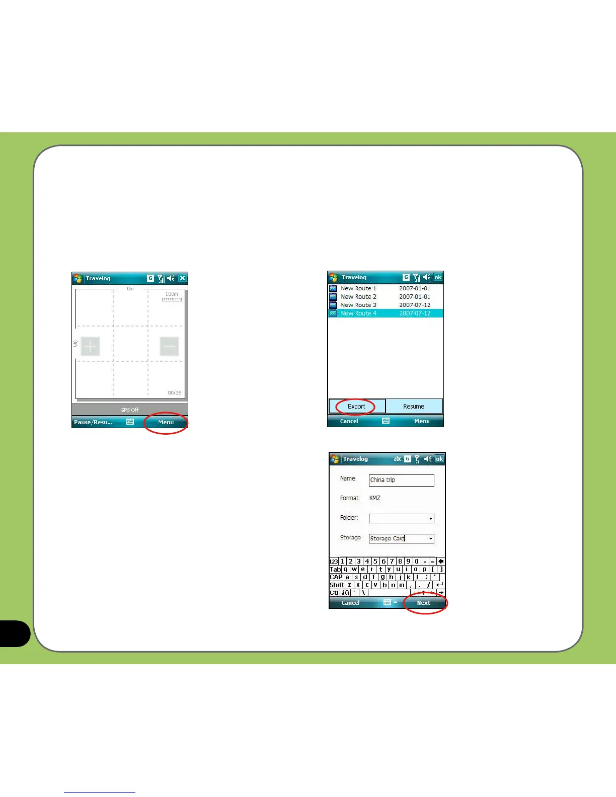 You can export your trip route into a KMZ le and load it to Google Earth.