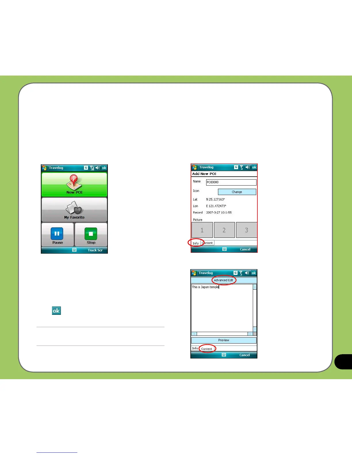 While recording travel track, you can create a new Point of Interest (POI) in current position.