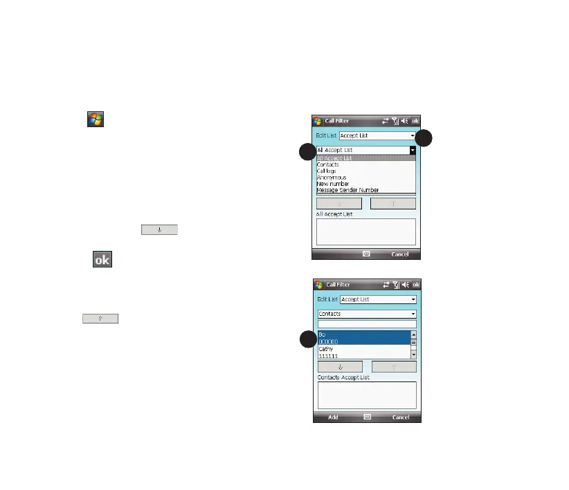 1. Tap > Programs > Call Filter.